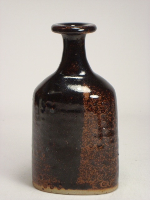 Unique stoneware vase with temmoku glaze and vague relief pattern by Finn Lynggaard.Impressed: Artists logotypePainted: Finn LHeight: 16 cm (6.3"")Weight: 0,4 kg (0.9 lbs)Price: 1900 SEKNo. 2116