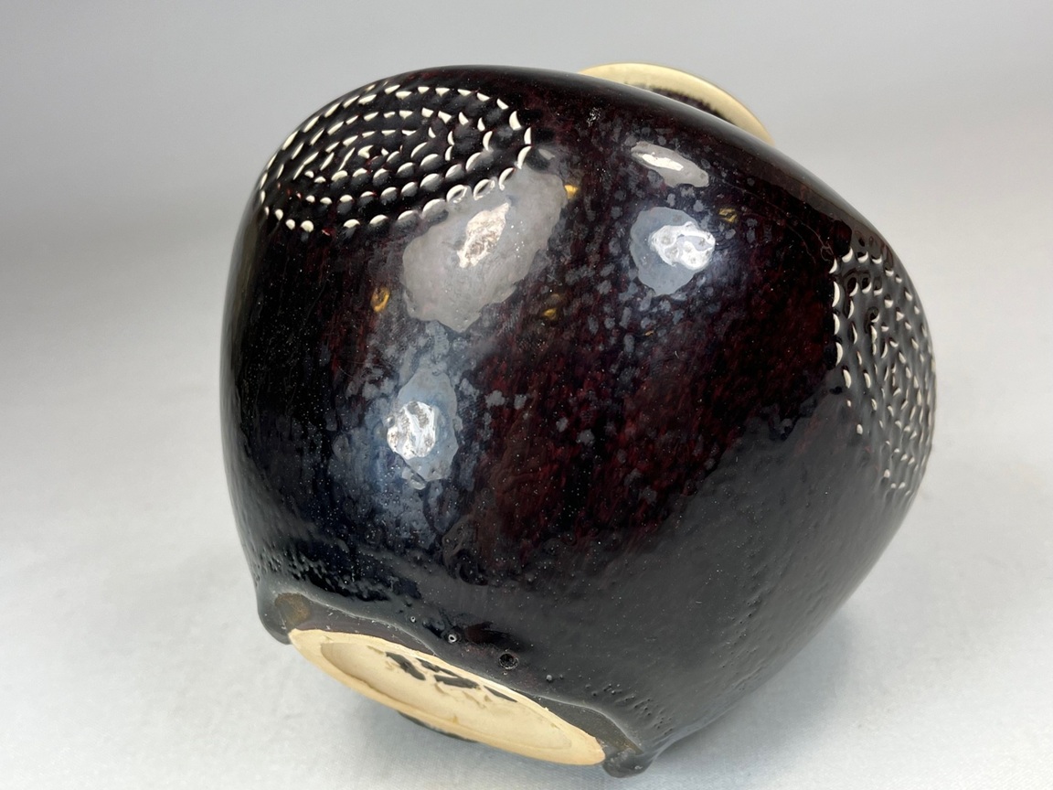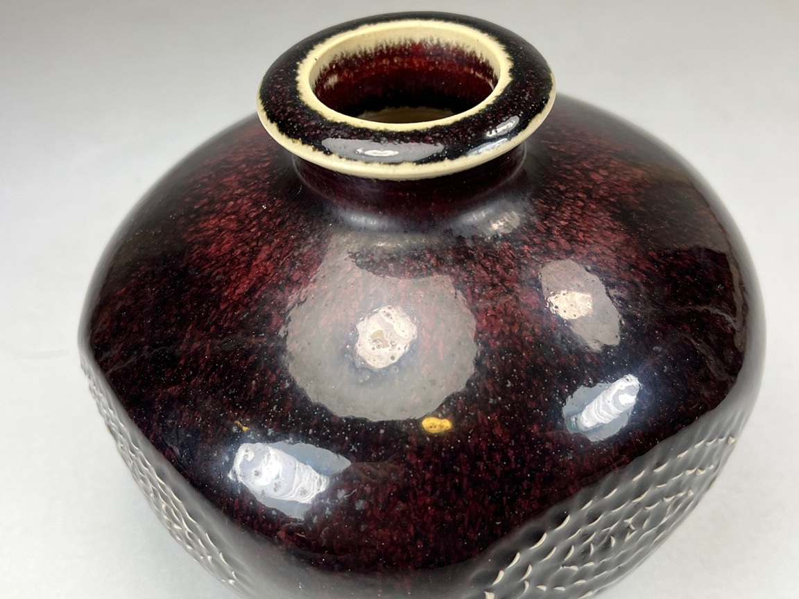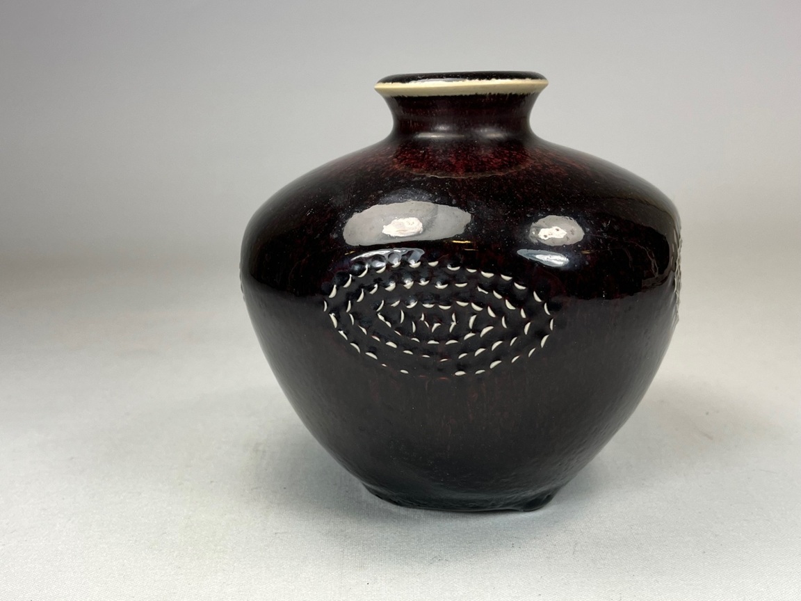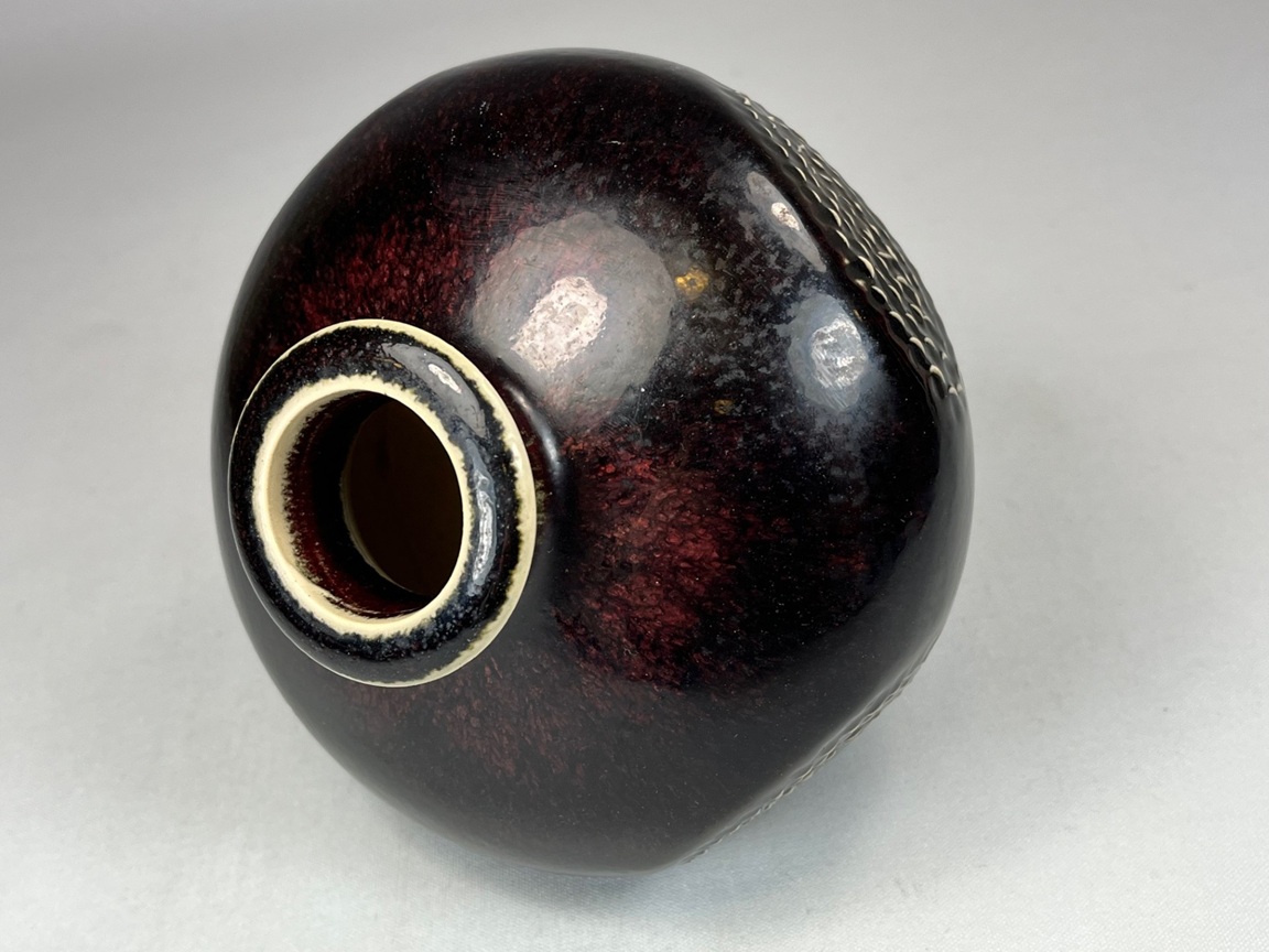 Stoneware vase with dark oxblod glaze by Rolf Palm, own studio in Mölle, Sweden.