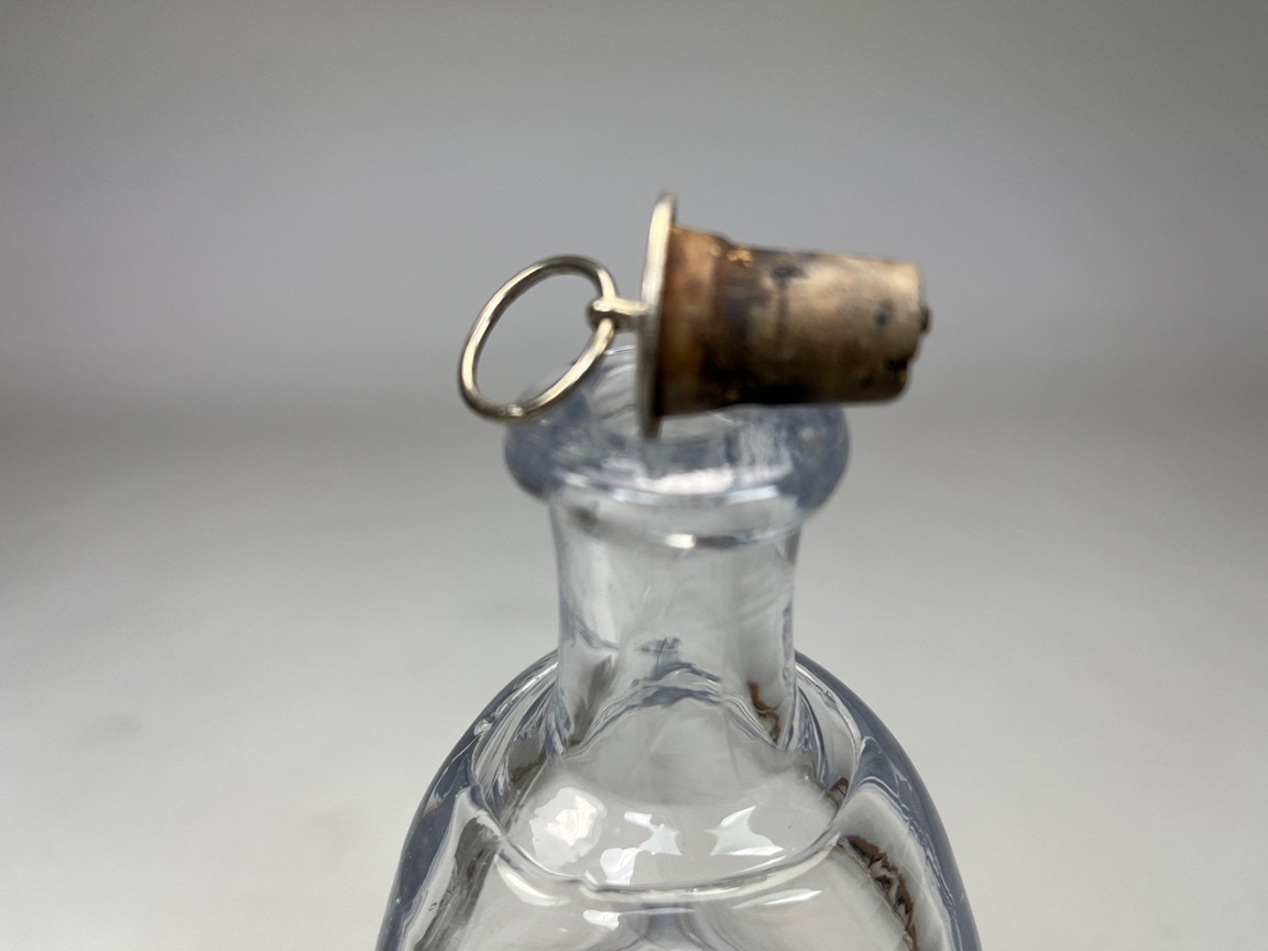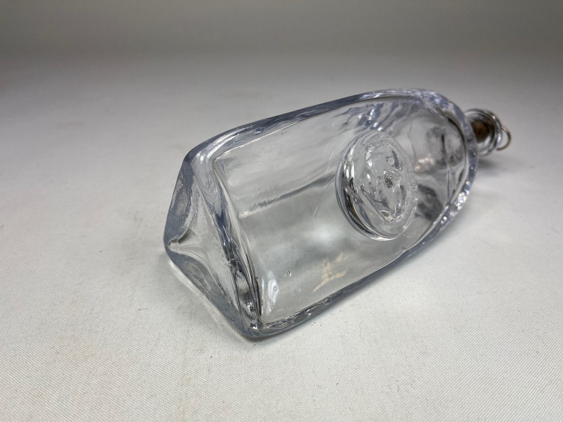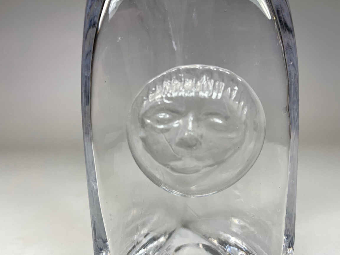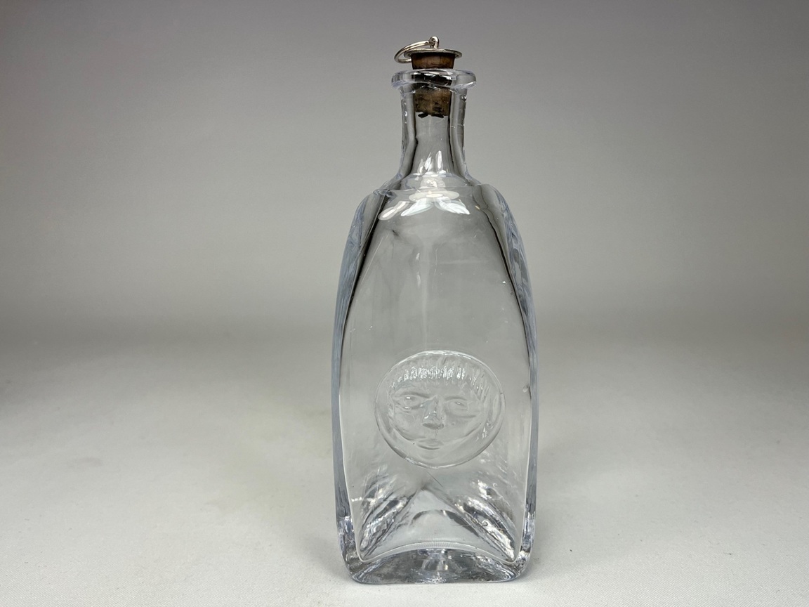 Handblown bottle with blueish glass and applied seal by Erik Höglund for Boda.
