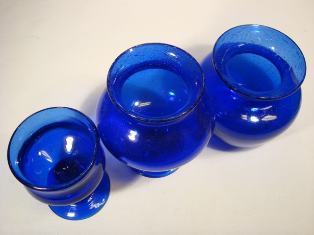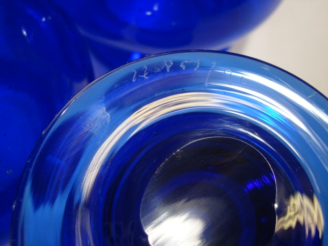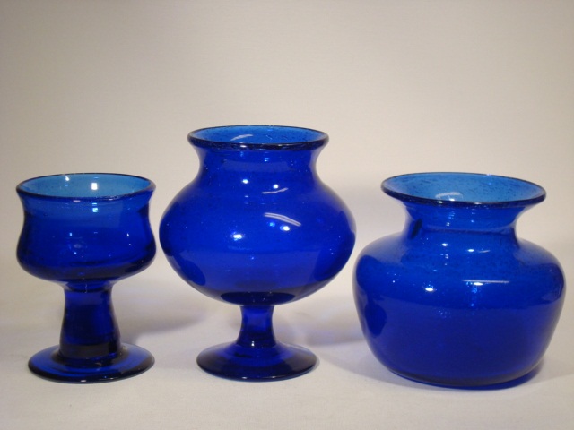 Freeehand blown blue vases designed by Erik Höglund.