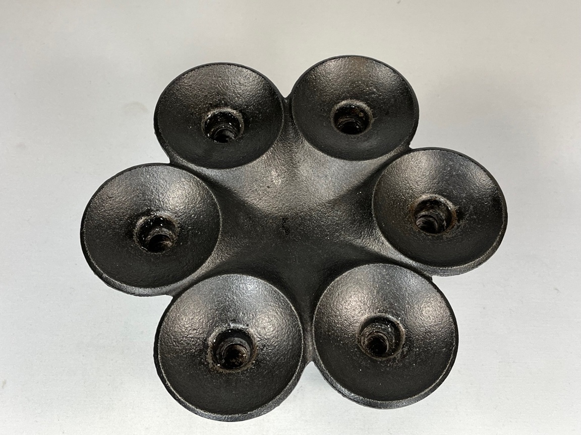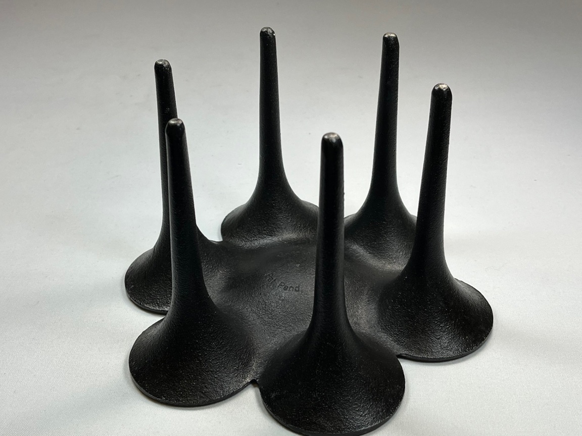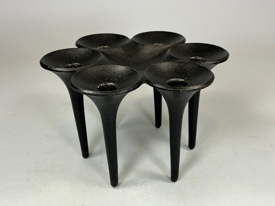 Cast iron candlestick, model name "Hornblower",  designed by Christer & Christel Holmgren. Sold by Illums Bolighus in Copenhagen, in the early 1960s.