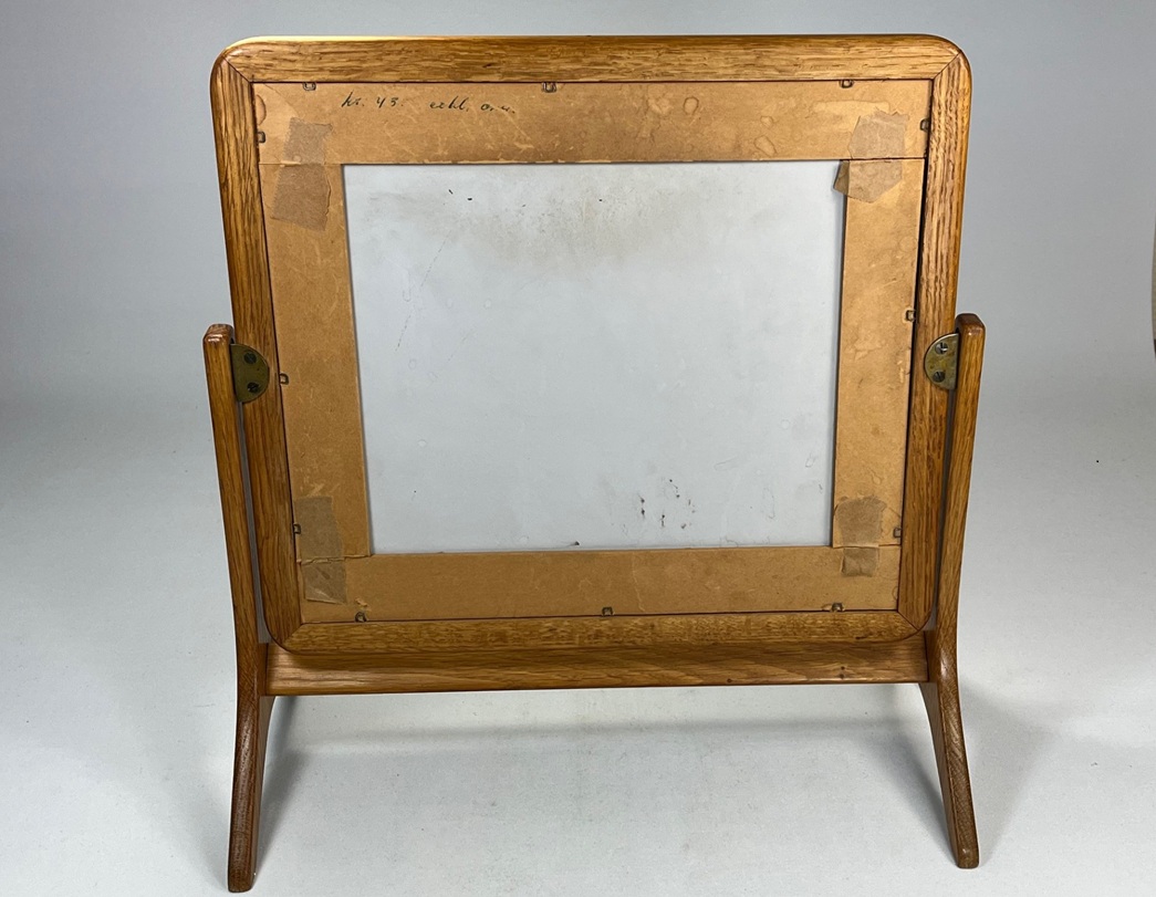 Table mirror in oak (?) by unknown Swedish maker.